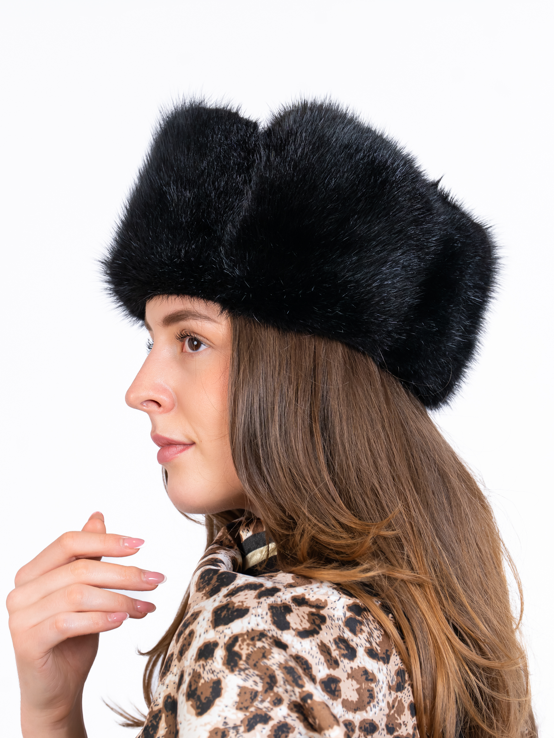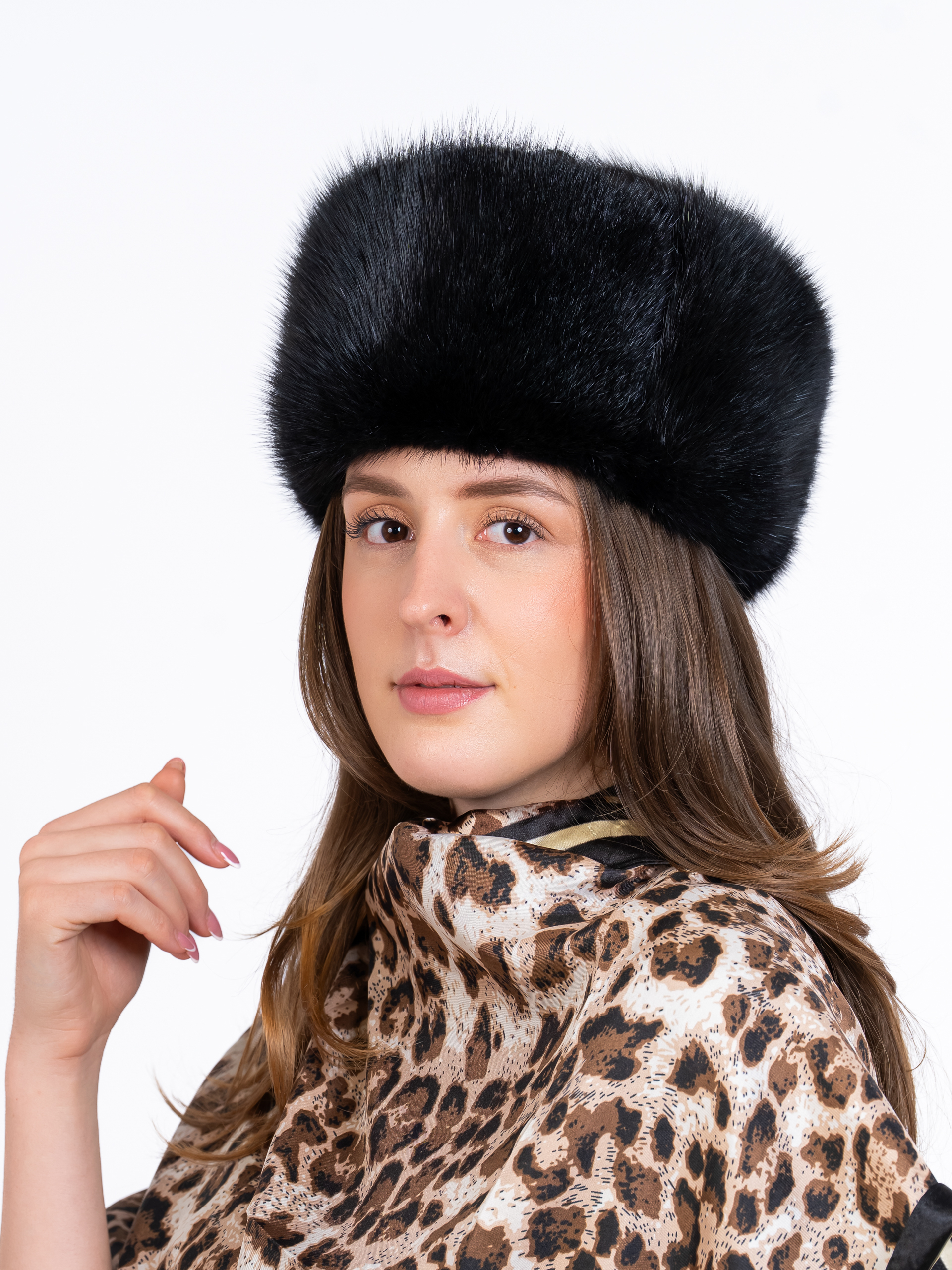 Căciulă jucăușă și sofisticată, realizată din blană naturală de bizam, cu urechi delicate prinse sus, ce îi conferă un aer simpatic și distinctiv. Textura densă și moale a blănii asigură căldură și confort optim, transformând-o într-un accesoriu ideal pentru sezonul rece.