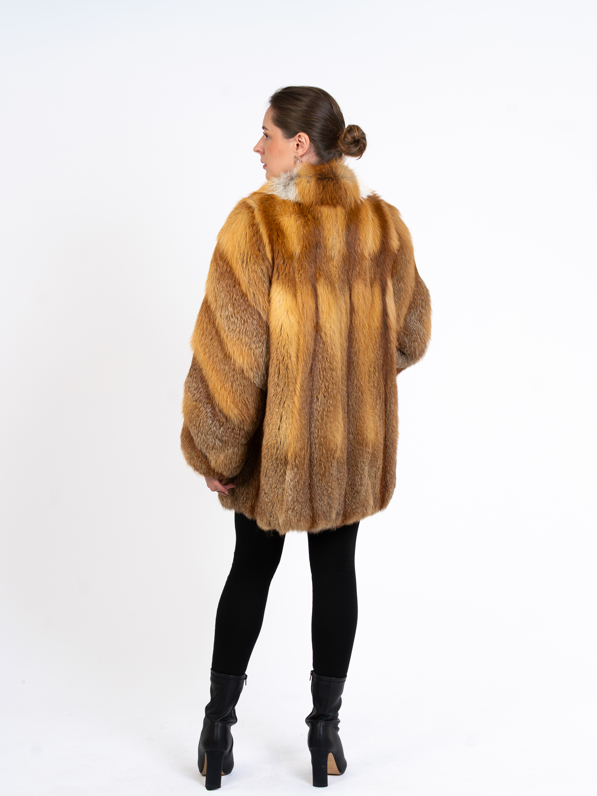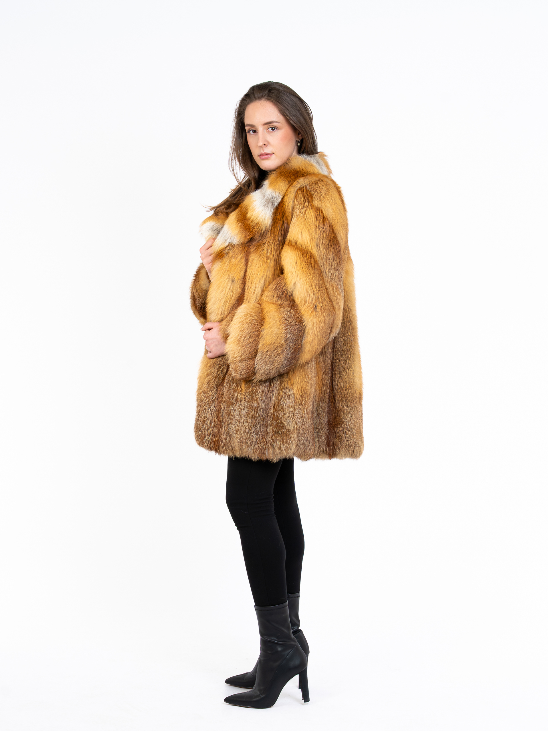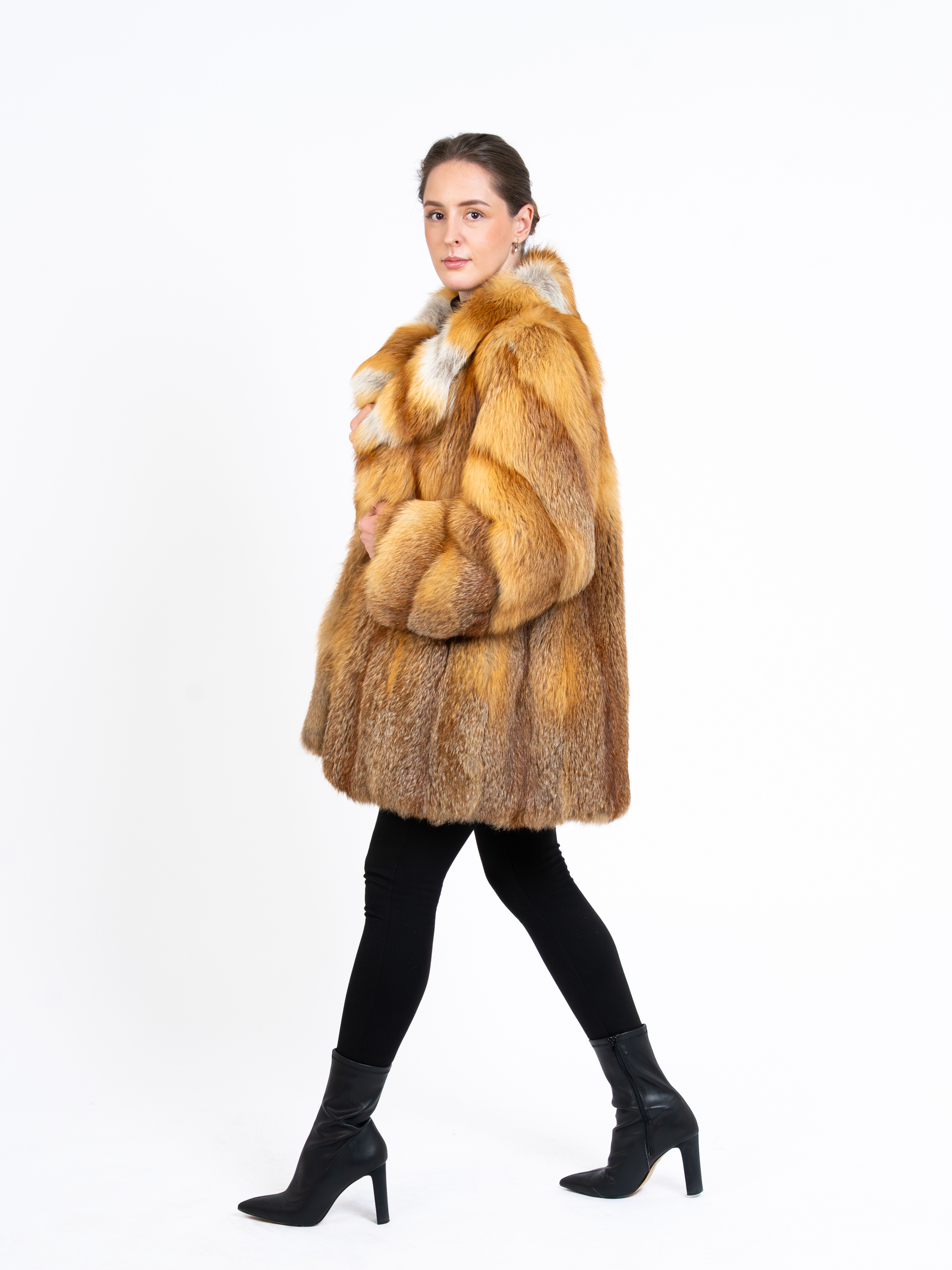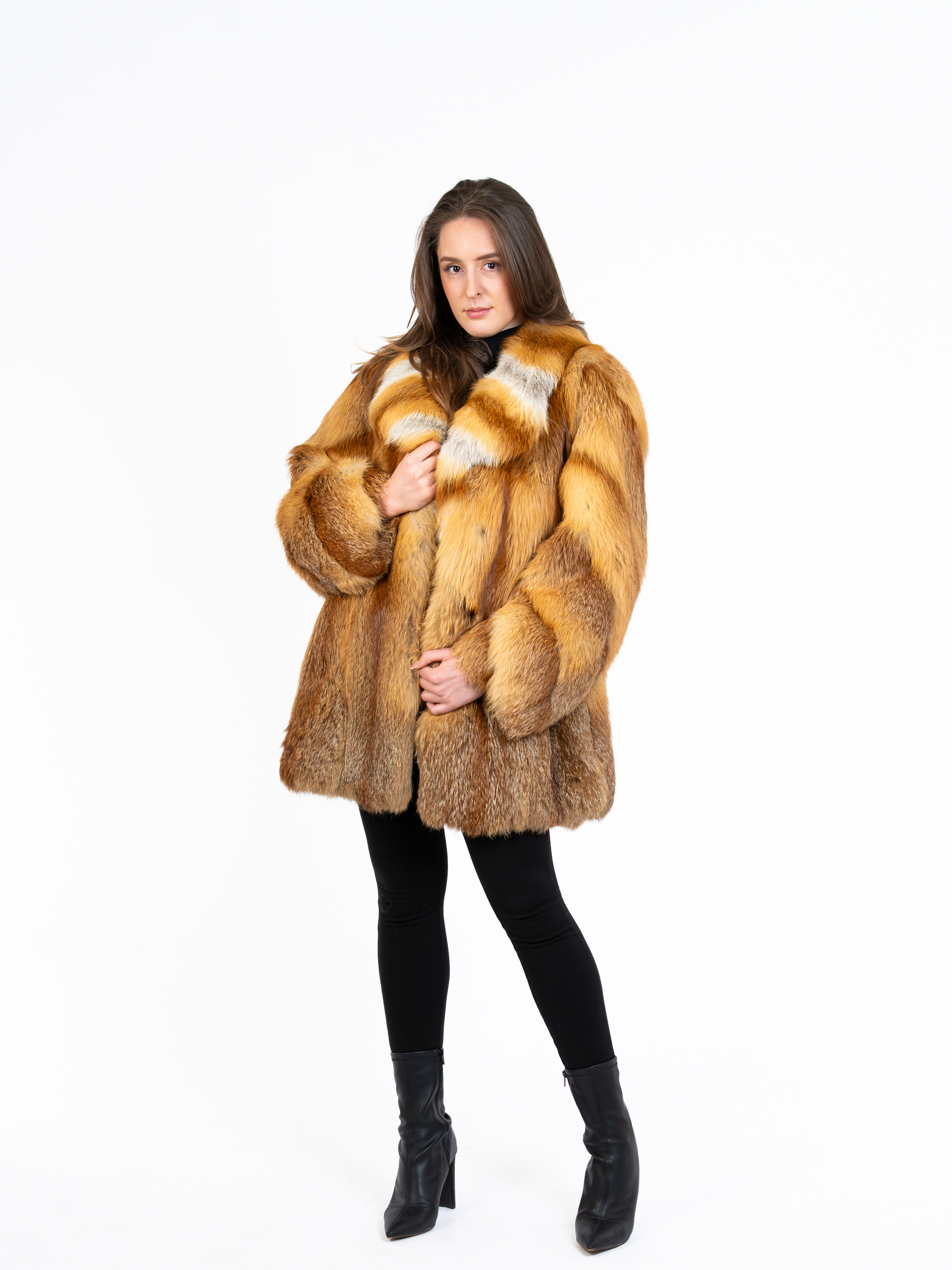 Haină spectaculoasă din blană naturală de vulpe canadiană, cu un volum generos și o textură luxuriantă, creată pentru femeia care dorește o prezență rafinată și impunătoare.