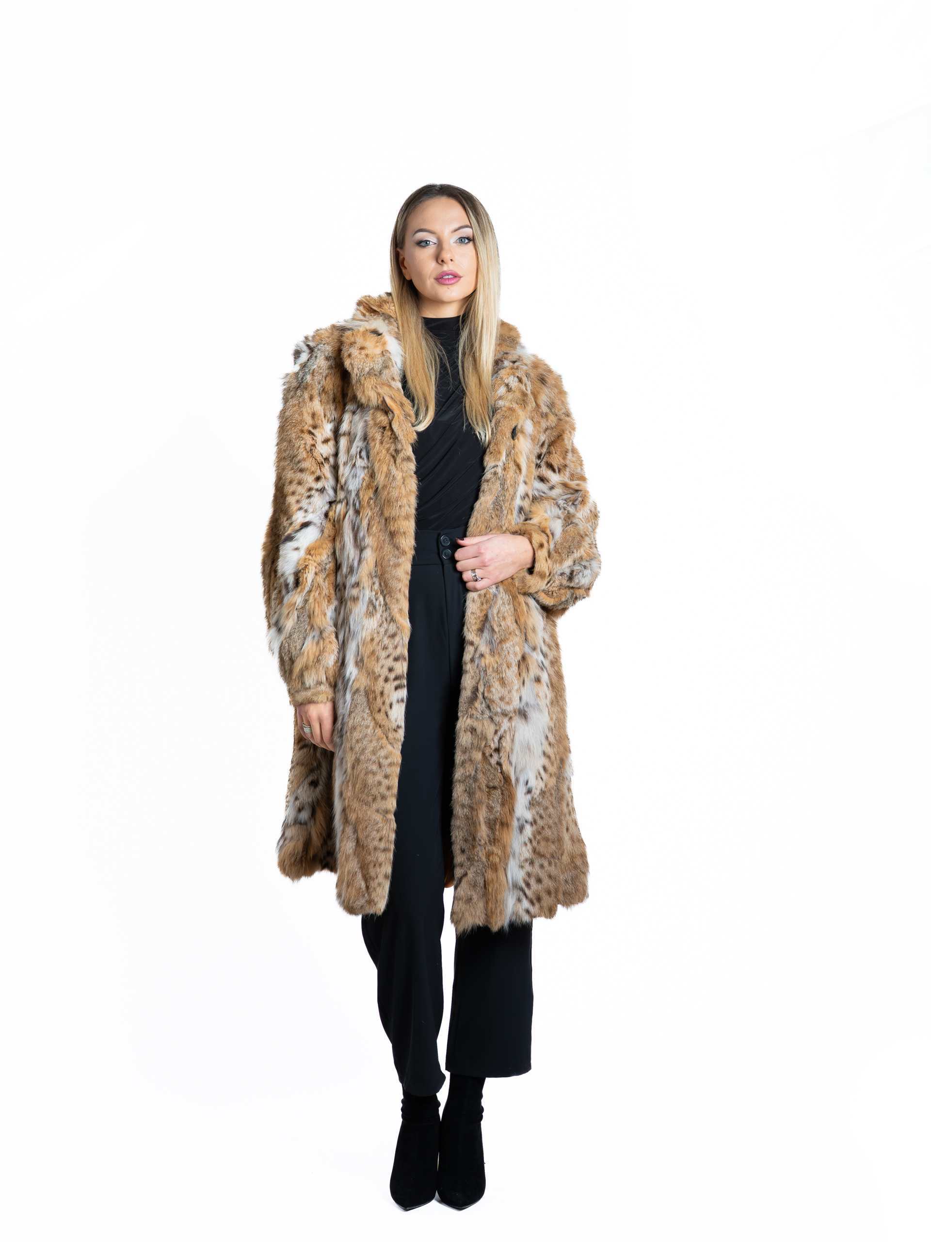 Fiecare piesă se remarcă prin nuanțele sale distincte și modelul unic al blănii, oferind un aspect spectaculos și sofisticat. Textura bogată și volumul elegant creează o siluetă impunătoare, dar echilibrată, potrivită atât pentru ocazii speciale, cât și pentru ținute de impact în sezonul rece.