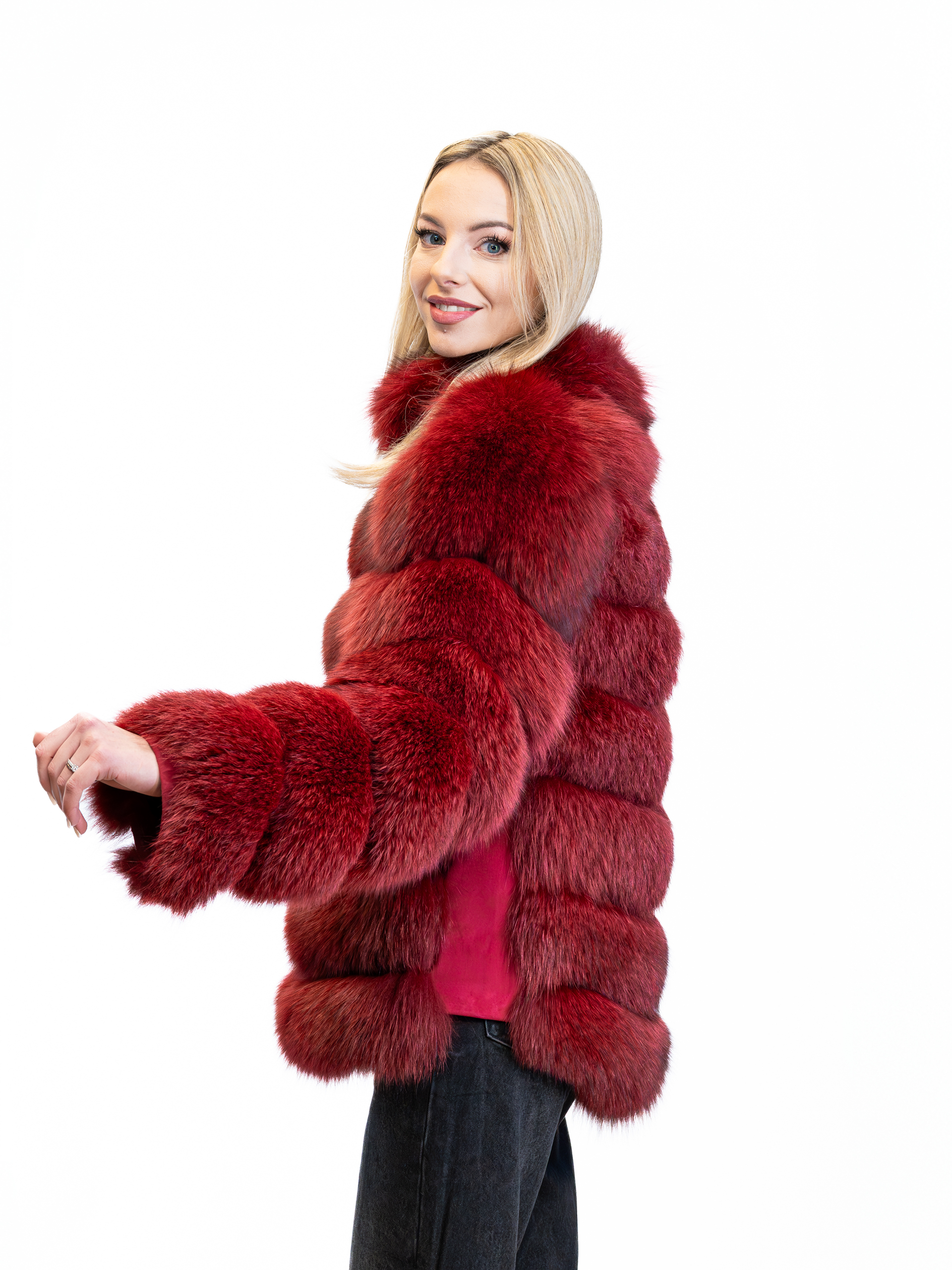 • Mărime: 40 • Blană: Vulpe polară • Închidere: Fermoar • Guler: Tip tunică • Căptușeală: Crep satin • Buzunare: Laterale • Detalii: Inserții de piele între starturile de blană. Straturile de vulpe polară sunt dispuse în "V" în zona spatelui, la cerere ele pot fi poziționate vertical sau orizontal.