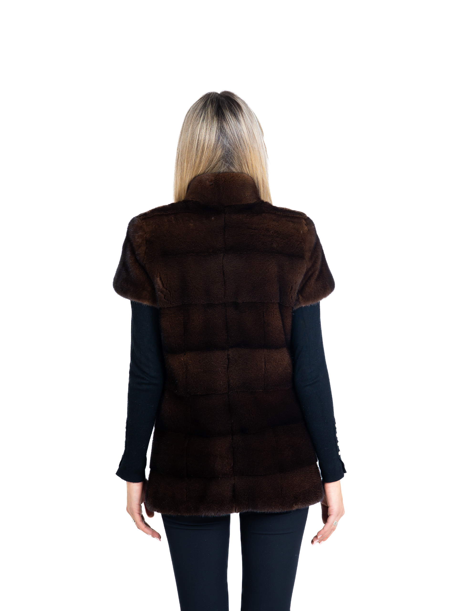 Designul fără mâneci o face extrem de versatilă, fiind ușor de purtat peste diferite tipuri de ținute — de la combinații casual până la apariții mai rafinate. Textura blănii oferă căldură și un plus de eleganță, în timp ce croiala permite libertate de mișcare și confort pe tot parcursul zilei. O piesă practică, dar cu personalitate, care completează natural garderoba de sezon rece.